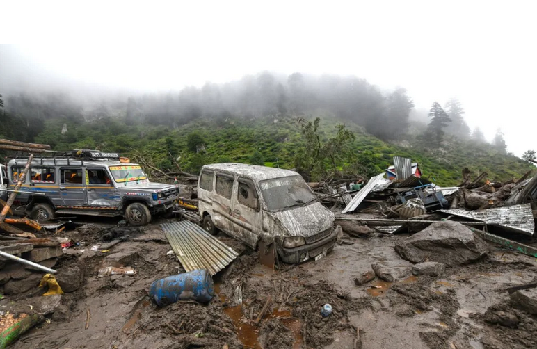 बादल फटने से आई अचानक बाढ़ ने इलाके को तबाह कर दिया, सामुदायिक रसोईघर और सुरक्षा चौकियों जैसी संरचनाएँ